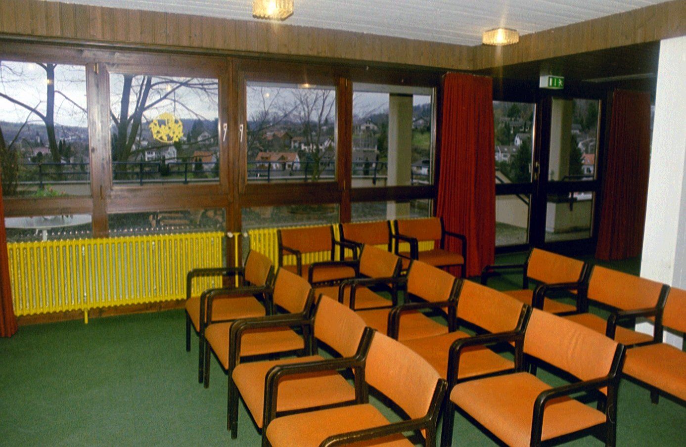 Ein düsterer, multifunktionaler Saal in einem Seniorenheim, in dem auch Gottesdienst gehalten wird, soll optimiert werden.