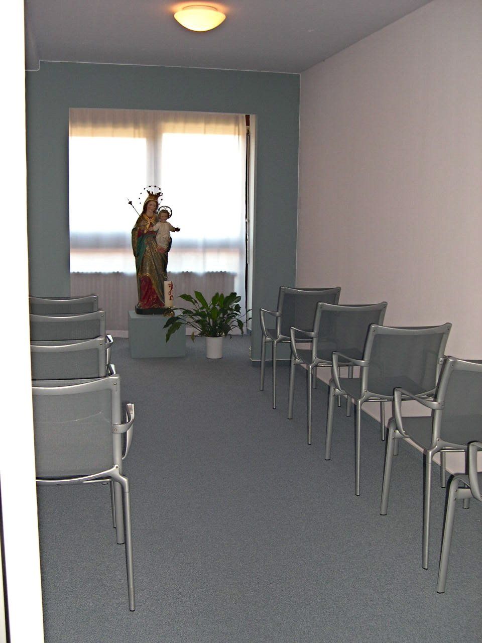 Aufgabe war freundlicheres pflegeleichtes Ambiente, multifunktional, leicht zu bewegende stabile Stühle. Die Kapelle sollte eine innige, tröstende, weiche Atmosphäre bekommen ...