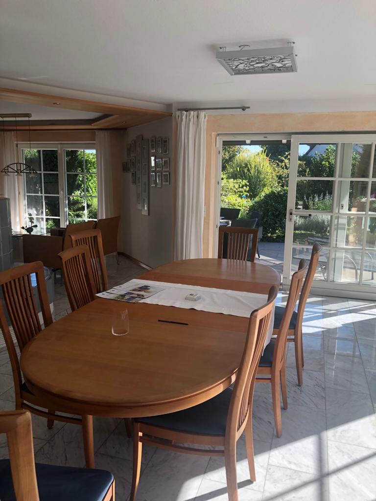 Esstisch und Stühle sind neu, sowie der Ruhesessel. Übernommen wurden die Sessel von Zanotta und Leder Couch,